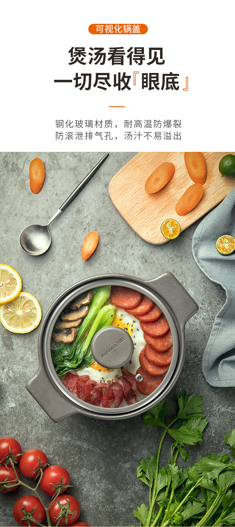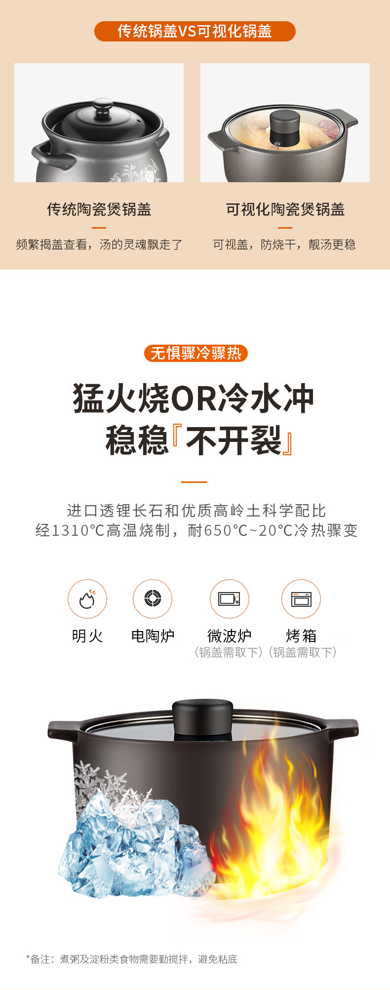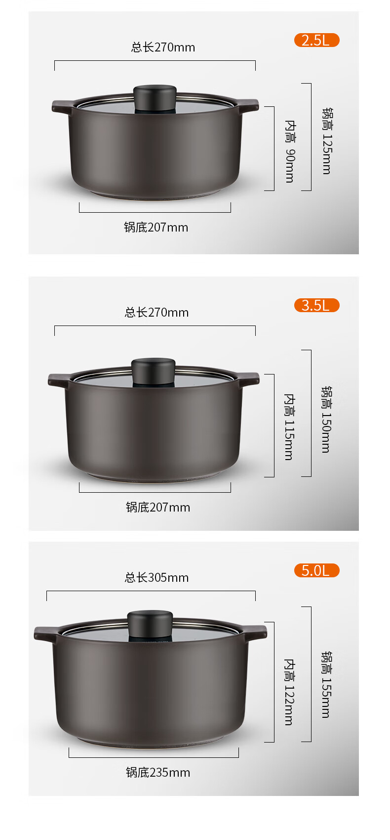 3.5L,可视锅盖,冷热不裂,进口原料,耐温高达650°C